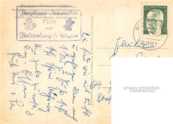 73659741 alte Postkarte Bolsterlang Berghaus Schwaben am Ochsenkopf Riedbergerhorn Allgaeuer Alpen postalisch gelaufen Erhaltung siehe scans [FriedD77] KatCode: 11110009780116