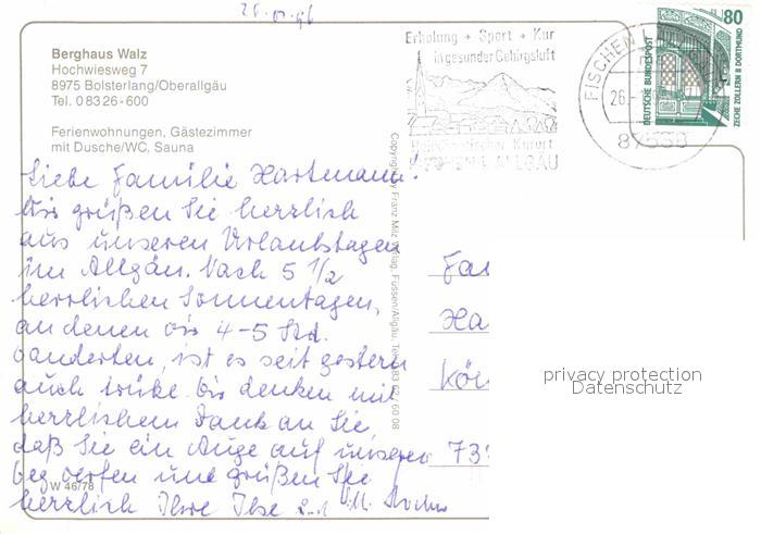 72716867 alte Postkarte Bolsterlang Berghaus Walz Winter Allgaeuer Alpen postalisch gelaufen Erhaltung siehe scans [FriedD77] KatCode: 11110009780116