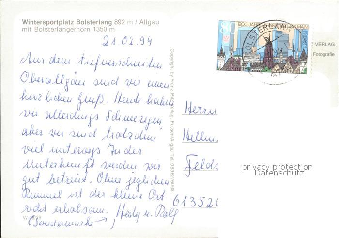 72432564 alte Postkarte Bolsterlang Bolsterlangerhorn postalisch gelaufen Erhaltung siehe scans KatCode: 11110009780116