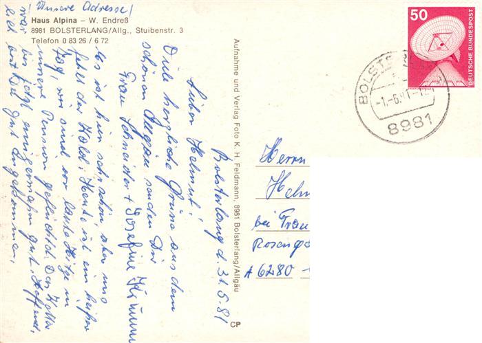 73880786 alte Postkarte Bolsterlang Gaestehaus Pension Haus Alpina postalisch gelaufen Erhaltung siehe scans [FriedD77] KatCode: 11110009780116