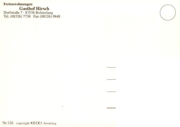 73882669 Bolsterlang Gasthof Hirsch Ferienwohnungen postalisch nicht gelaufen Erhaltung siehe scans [WerneD78] KatCode: 11110009780116