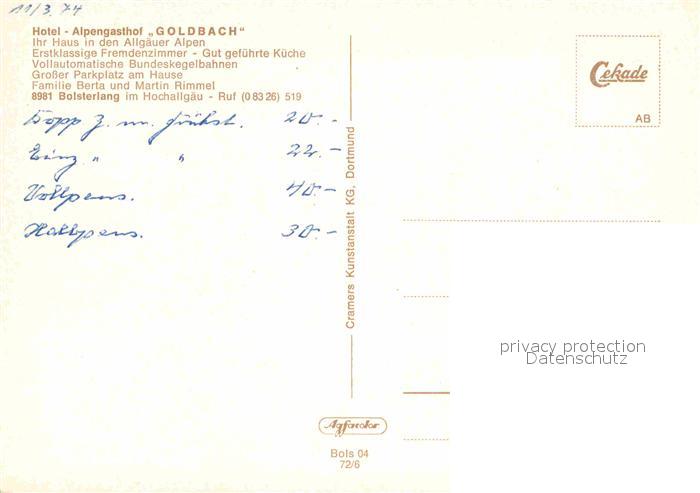 72654783 Bolsterlang Hotel Gasthof Goldbach postalisch nicht gelaufen Erhaltung siehe scans [AndreD76] KatCode: 11110009780116
