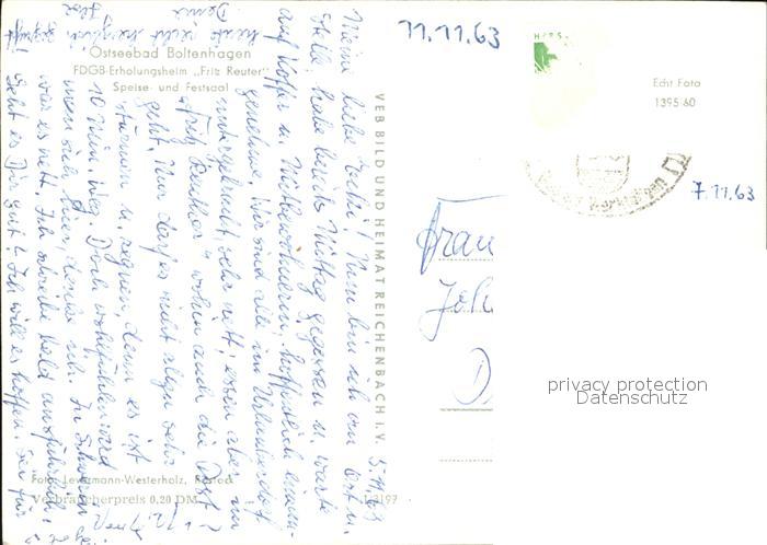 72400797 alte Postkarte Boltenhagen Ostseebad Erholungsheim Fritz Reuter Festsaal postalisch gelaufen Erhaltung siehe scans KatCode: 11110013058014