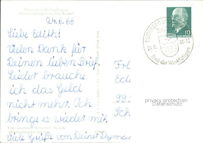 72064237 alte Postkarte Boltenhagen Ostseebad FDGB Erholungsheim Fritz Reuter postalisch gelaufen Erhaltung siehe scans KatCode: 11110013058014
