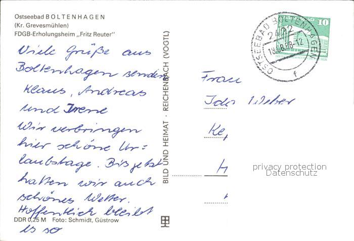 72219103 alte Postkarte Boltenhagen Ostseebad FDGB- Erholungsheim Fritz Reuter postalisch gelaufen Erhaltung siehe scans KatCode: 11110013058014