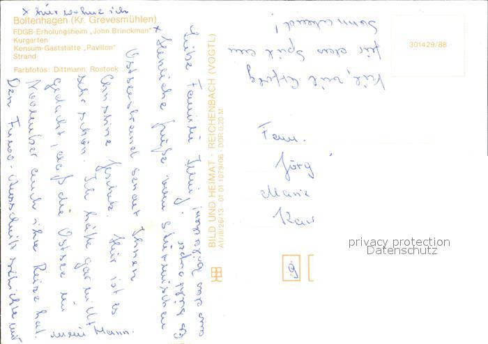 72419010 Boltenhagen Ostseebad FDGB Ferienheim John Brinckman Kurgarten Konsum Gaststaette Pavillon Strand postalisch nicht gelaufen Erhaltung siehe scans KatCode: 11110013058014