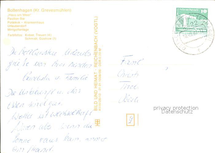 72368078 alte Postkarte Boltenhagen Ostseebad Haus am Meer Pavillon Bar Poliklinik Krankenhaus Urlauberdorf Minigolfanlage postalisch gelaufen Erhaltung siehe scans KatCode: 11110013058014