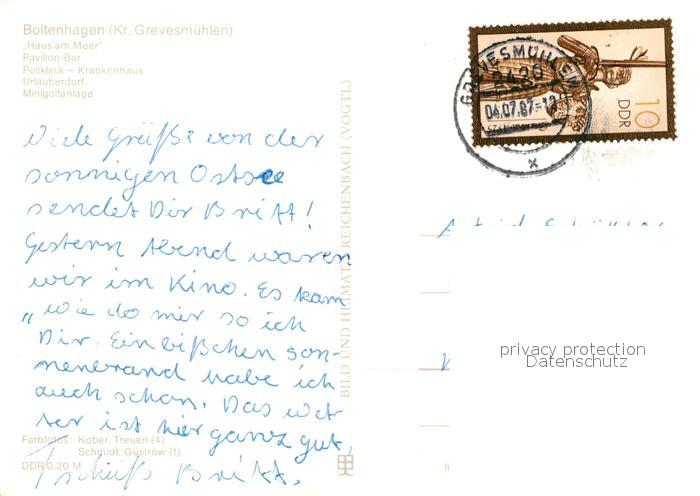 73061285 alte Postkarte Boltenhagen Ostseebad Haus am Meer Pavillon Bar Poliklinik Urlauberdorf Minigolfanlage postalisch gelaufen Erhaltung siehe scans [FriedD77] KatCode: 11110013058014