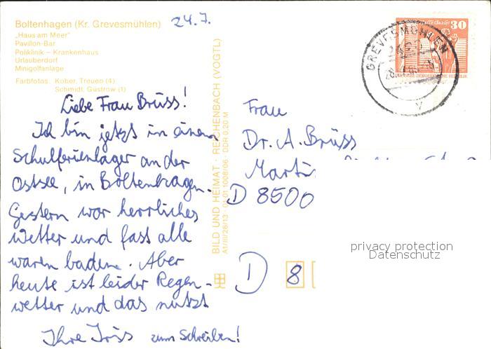 72126794 alte Postkarte Boltenhagen Ostseebad Haus am Meer Poliklinik postalisch gelaufen Erhaltung siehe scans KatCode: 11110013058014