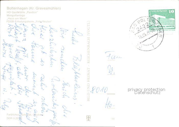 72372918 alte Postkarte Boltenhagen Ostseebad HOG Pavillon Minigolfanlage Haus am Meer FDGB Erholungsheim Fritz Reuter postalisch gelaufen Erhaltung siehe scans KatCode: 11110013058014