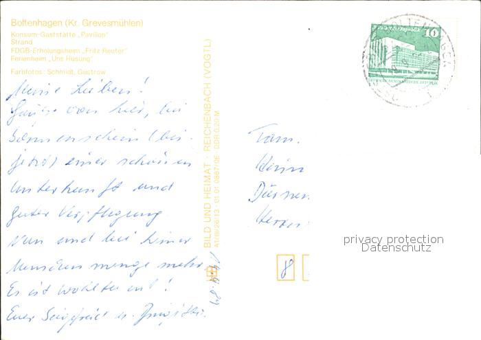 72336046 alte Postkarte Boltenhagen Ostseebad Konsum Gaststaette Pavillon Strand Brunnen FDGB Erholungsheim Ferienheim postalisch gelaufen Erhaltung siehe scans KatCode: 11110013058014