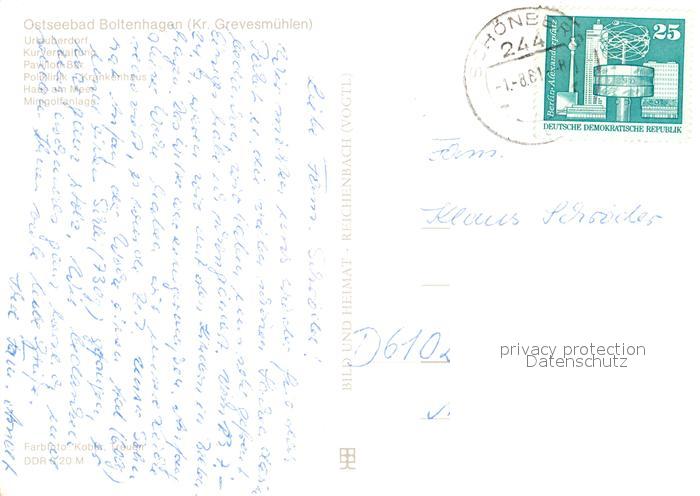 73029916 alte Postkarte Boltenhagen Ostseebad Kurverwaltung Bar Pavillon Poliklinik Krankenhaus postalisch gelaufen Erhaltung siehe scans [KathaD81] KatCode: 11110013058014