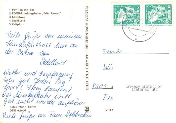 73549382 alte Postkarte Boltenhagen Ostseebad Pavillon mit Bar FDGB Erholungsheim Fritz Reuter Mittelweg Steilkueste Zeltplatz postalisch gelaufen Erhaltung siehe scans [WerneD78] KatCode: 11110013058014