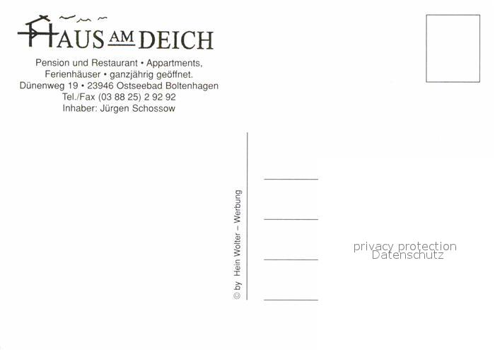 72676144 Boltenhagen Ostseebad Pension Restaurant Haus am Deich postalisch nicht gelaufen Erhaltung siehe scans [FriedD77] KatCode: 11110013058014