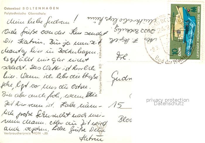 72925693 alte Postkarte Boltenhagen Ostseebad Polytechnische Oberschule postalisch gelaufen Erhaltung siehe scans [PaolaD17] KatCode: 11110013058014