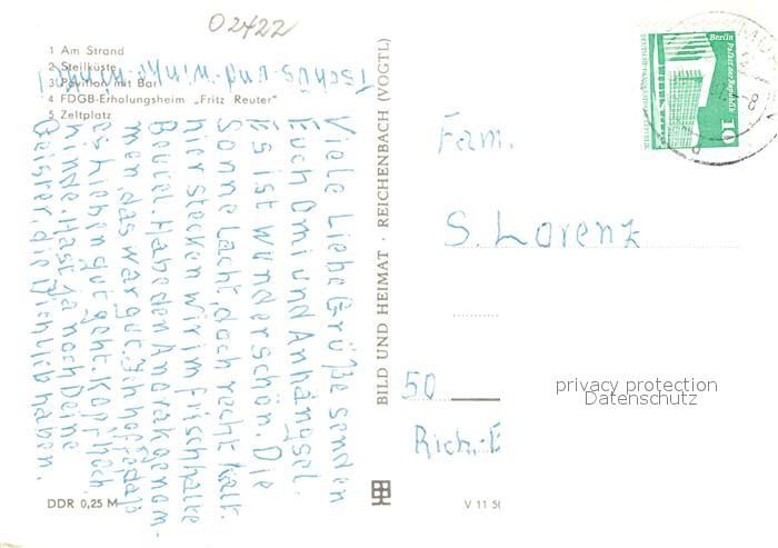 72942714 alte Postkarte Boltenhagen Ostseebad Steilkueste Erholungsheim Fritz Reuter Zeltplatz postalisch gelaufen Erhaltung siehe scans [NatalD47] KatCode: 11110013058014