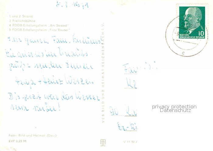 72831519 alte Postkarte Boltenhagen Ostseebad Strand Freilichtb?hne Erholungsheime Fritz Reuter und Am Strand postalisch gelaufen Erhaltung siehe scans [LiesaD40] KatCode: 11110013058014