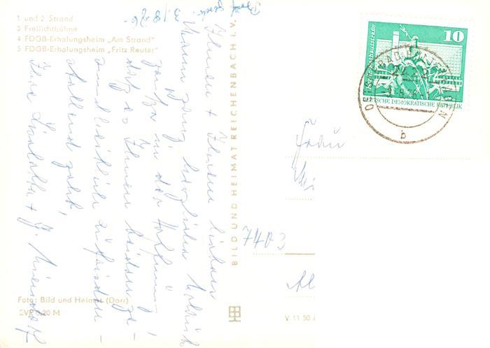 73901009 alte Postkarte Boltenhagen Ostseebad Strand Freilichtbuehne FDGB Erholugsheim Am Strand FDGB Erholungsheim Fritz Reuter postalisch gelaufen Erhaltung siehe scans [WerneD78] KatCode: 11110013058014