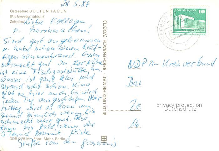 73687581 alte Postkarte Boltenhagen Ostseebad Zeltplatz postalisch gelaufen Erhaltung siehe scans [WerneD78] KatCode: 11110013058014