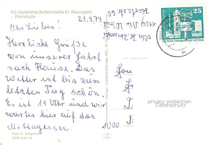 73210311 alte Postkarte Boltenmuehle KG Gaststaette Weinstube postalisch gelaufen Erhaltung siehe scans [FriedD77] KatCode: 11110012068320