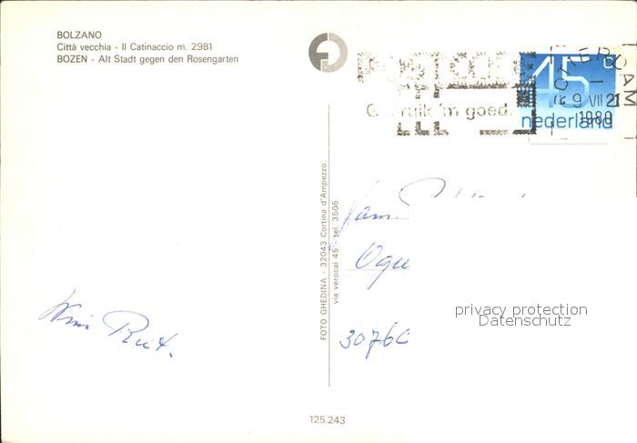 old postcard Bolzano Altstadt gegen den Rosengarten Dolomiten postalisch gelaufen Erhaltung siehe scans