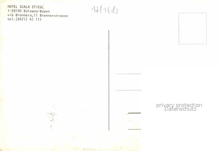Bolzano Hotel Scala Stiegl Terrasse Swimmingpool postalisch nicht gelaufen Erhaltung siehe scans [WerneD78]