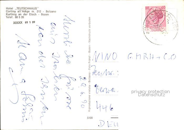 old postcard Bolzano Hotel Teutschhaus Kirche Schwimmbad postalisch gelaufen Erhaltung siehe scans
