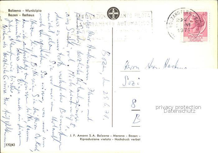 old postcard Bolzano Municipio postalisch gelaufen Erhaltung siehe scans