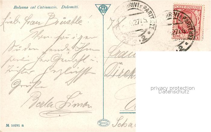 old postcard Bolzano Palmen Promenade Col Catinaccio Dolomiti Dolomiten postalisch gelaufen Erhaltung siehe scans [FriedD77]