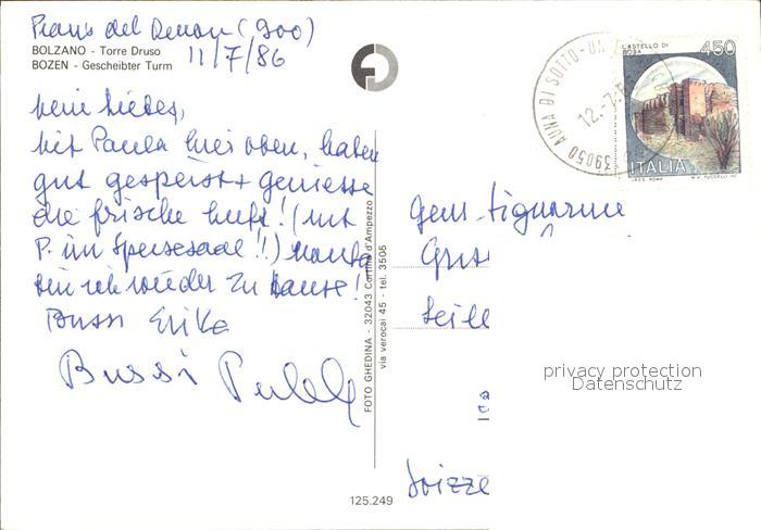 old postcard Bolzano Torre Druso postalisch gelaufen Erhaltung siehe scans
