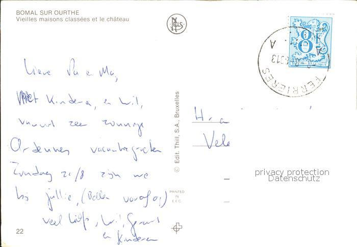 72297213 carte postale Bomal-sur-Ourthe Vieilles maisons classèes et le chatèau postalisch gelaufen Erhaltung siehe scans KatCode: 11070081003208