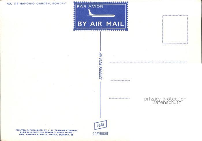 Bombay Mumbai Hanging Garden postalisch nicht gelaufen Erhaltung siehe scans [AndreD76 kv012box]