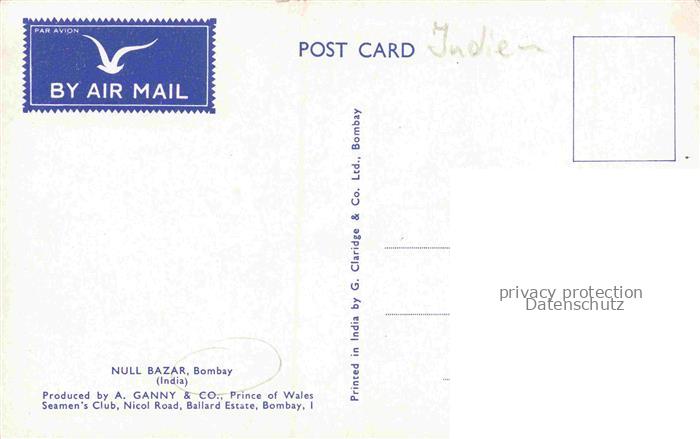 74141677 Bombay MUMBAI Maharashtra India Null Bazar postalisch nicht gelaufen Erhaltung siehe scans [WerneD78] KatCode: 12120