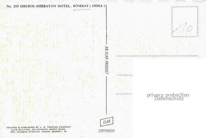 74141722 Bombay MUMBAI Maharashtra India Oberoi Sheraton Hotel postalisch nicht gelaufen Erhaltung siehe scans [WerneD78] KatCode: 12120