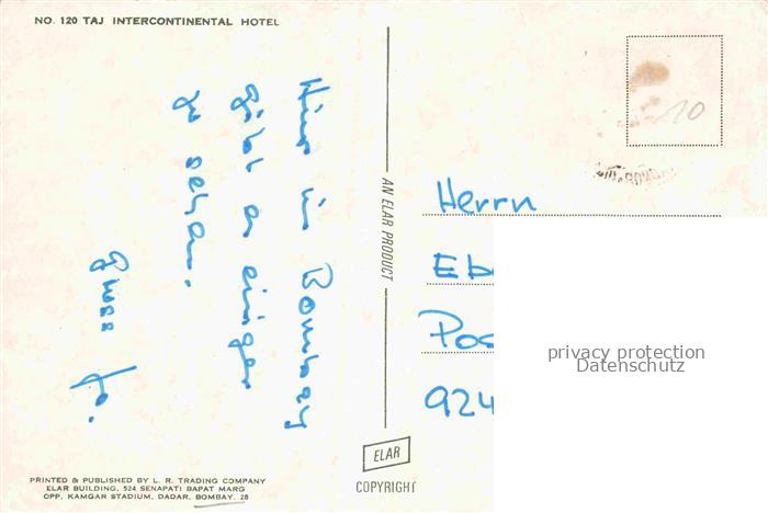 74141717 Bombay MUMBAI Maharashtra India Taj Intercontinental Hotel postalisch nicht gelaufen Erhaltung siehe scans [WerneD78] KatCode: 12120