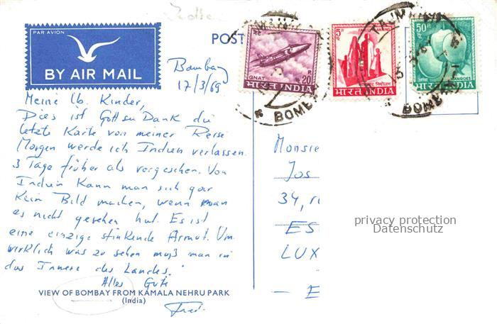 74141803 old postcard Bombay MUMBAI Maharashtra India View from Kamala Nehru Park postalisch gelaufen Erhaltung siehe scans [WerneD78] KatCode: 12120