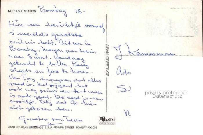 Bombay Mumbai Station postalisch nicht gelaufen Erhaltung siehe scans
