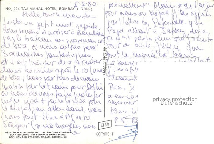 Bombay Mumbai Taj Mahal Hotel postalisch nicht gelaufen Erhaltung siehe scans