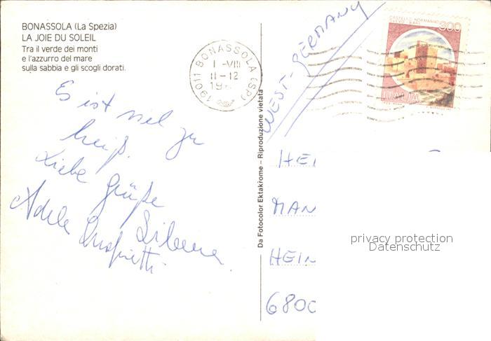 old postcard Bonassola La Joie du Soleil postalisch gelaufen Erhaltung siehe scans