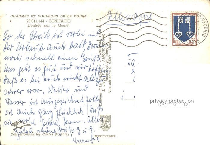 12261890 carte postale Bonifacio Corse du Sud Entree par le Goulet vue aerienne postalisch gelaufen Erhaltung siehe scans KatCode: 1117002A42A041
