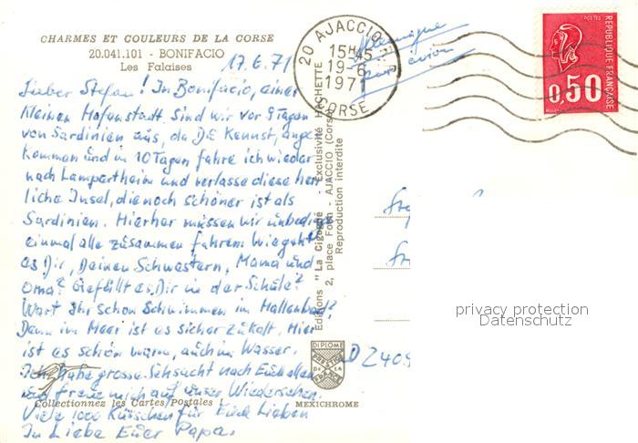 13718401 Bonifacio Corse du Sud Les falaises postalisch gelaufen Erhaltung siehe scans [FriedD77] carte postale Frie Katcode 1117002A42A041
