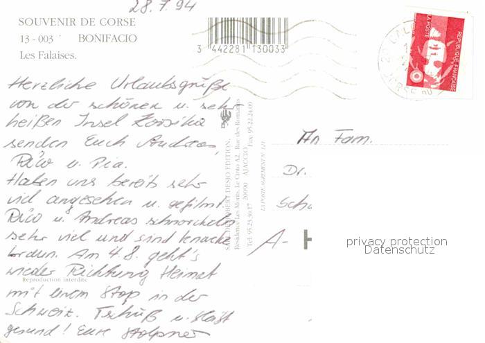 12624693 carte postale Bonifacio Corse du Sud Les Falaises postalisch gelaufen Erhaltung siehe scans [WerneD78] KatCode: 1117002A42A041