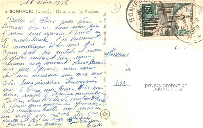 13497326 carte postale Bonifacio Corse du Sud Maisons sur les Rochers postalisch gelaufen Erhaltung siehe scans [WerneD78] KatCode: 1117002A42A041