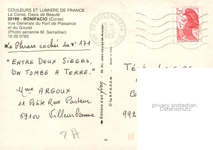 13531509 carte postale Bonifacio Corse du Sud Port de Plaisance et le Goulet vue aérienne postalisch gelaufen Erhaltung siehe scans [FriedD77] KatCode: 1117002A42A041