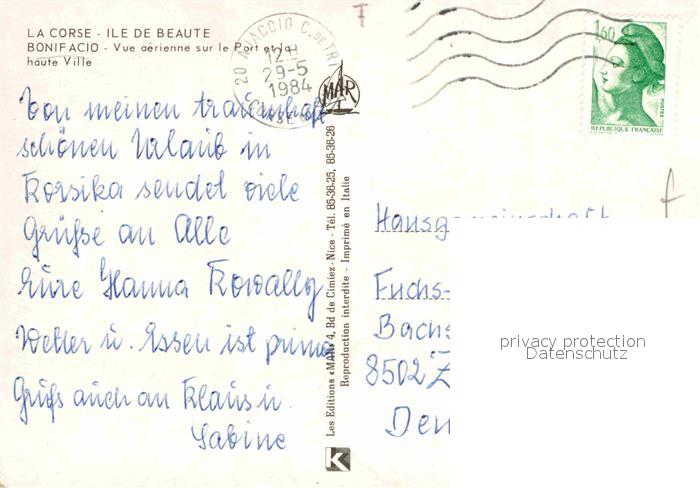 12650781 carte postale Bonifacio Corse du Sud Vue aerienne sur le Port haute Ville postalisch gelaufen Erhaltung siehe scans [WerneD78] KatCode: 1117002A42A041