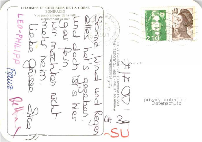 12755119 carte postale Bonifacio Corse du Sud postalisch gelaufen Erhaltung siehe scans [NatalD47] KatCode: 1117002A42A041