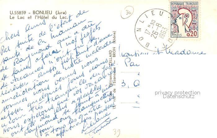 13503947 carte postale Bonlieu Lac Jura Panorama Lac Hôtel du Lac vue aérienne postalisch gelaufen Erhaltung siehe scans [FriedD77] KatCode: 11170039339063