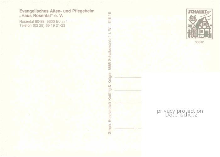 72913622 Bonn Rhein Alten- und Pflegeheim Haus Rosental postalisch nicht gelaufen Erhaltung siehe scans [LiesaD40] KatCode: 11110005314000