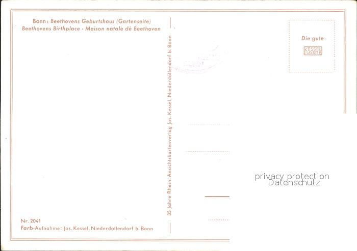 72303274 Bonn Rhein Beethovens Geburtshaus postalisch nicht gelaufen Erhaltung siehe scans KatCode: 11110005314000