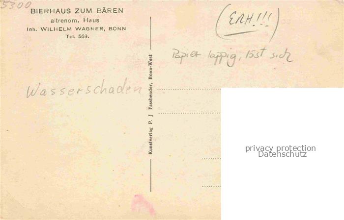 74014980 BONN Rhein Bierhaus zum Baeren Marktplatz Bahnhof postalisch nicht gelaufen Erhaltung siehe scans [FriedD77] KatCode: 11110005314000